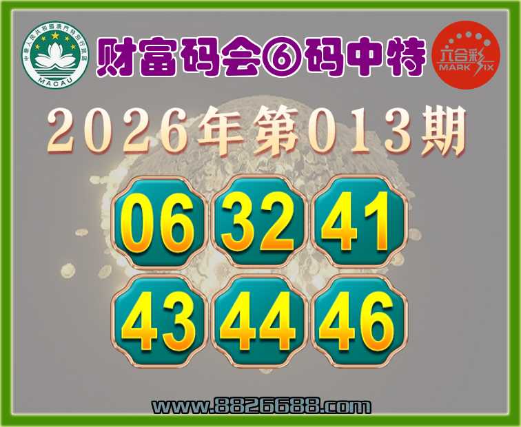 013期:〖财富码会〗 🍏⑥码中特🍏【06.32.41.43.44.46】开:01